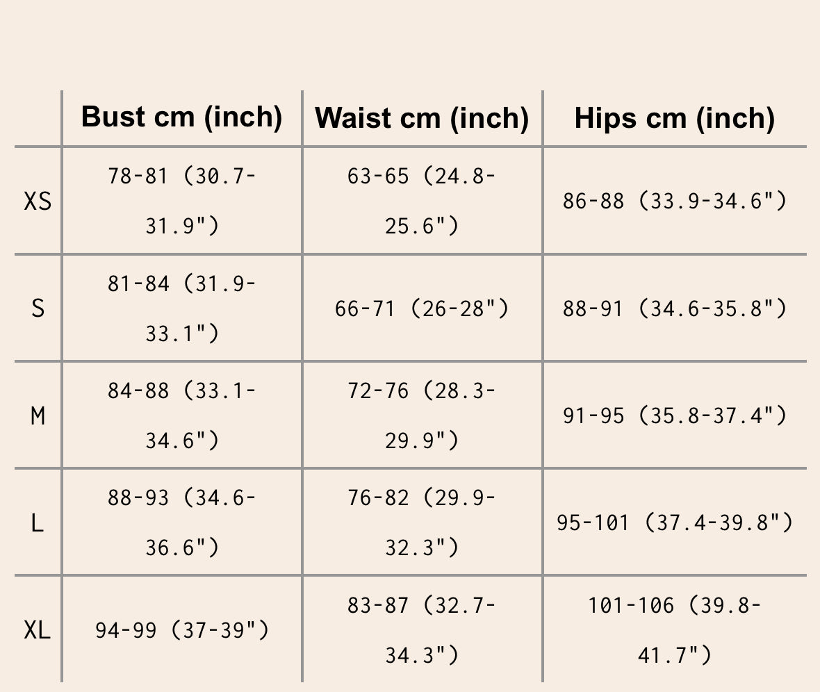 - Karolina wears a size S and is 178 cm (5’10’’) tall. Pauline wears a size S and is 175 cm (5’9’’) tall. Naomi wears a size XS and is 170 cm (5'7'') tall.